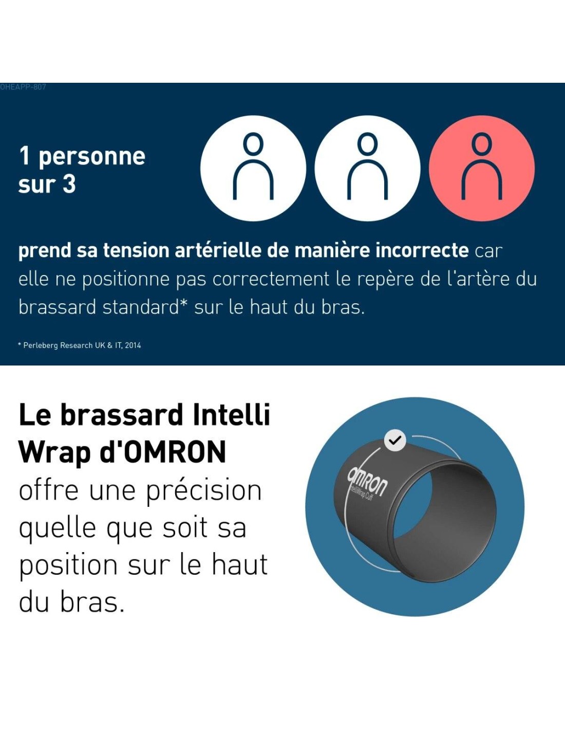 Afin d’éviter tout type de résultats erronés à cause d’une mauvaise position de votre brassard, le brassard Intelli Wrap se pourvoit d'un capteur à 360°, permettant ainsi une fiabilité de vos résultats, et ce quelque soit le positionnement du brassard autour de votre bras.